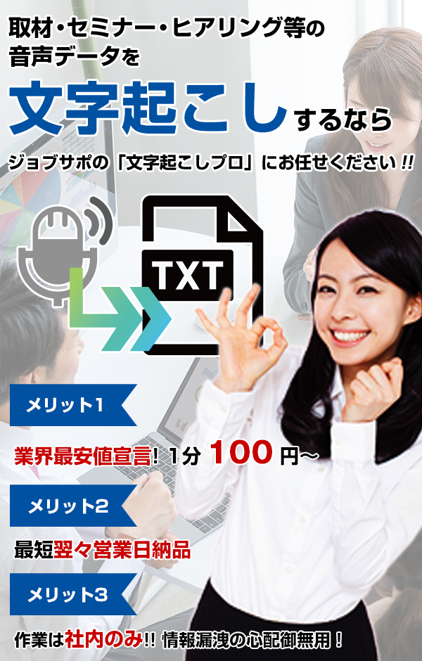 | 3人以上の話者区別表記 | 話者1人につき1分当り+10円(最大4人まで)